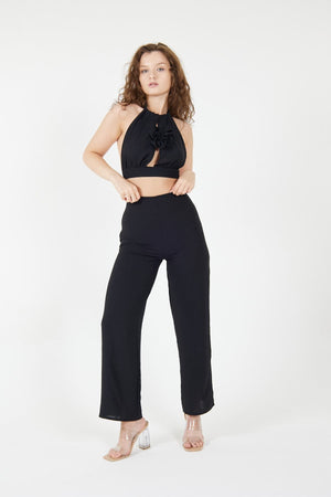 Cora Askılı Sırt Açık Uzun Siyah Kadın Elbise