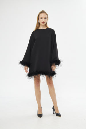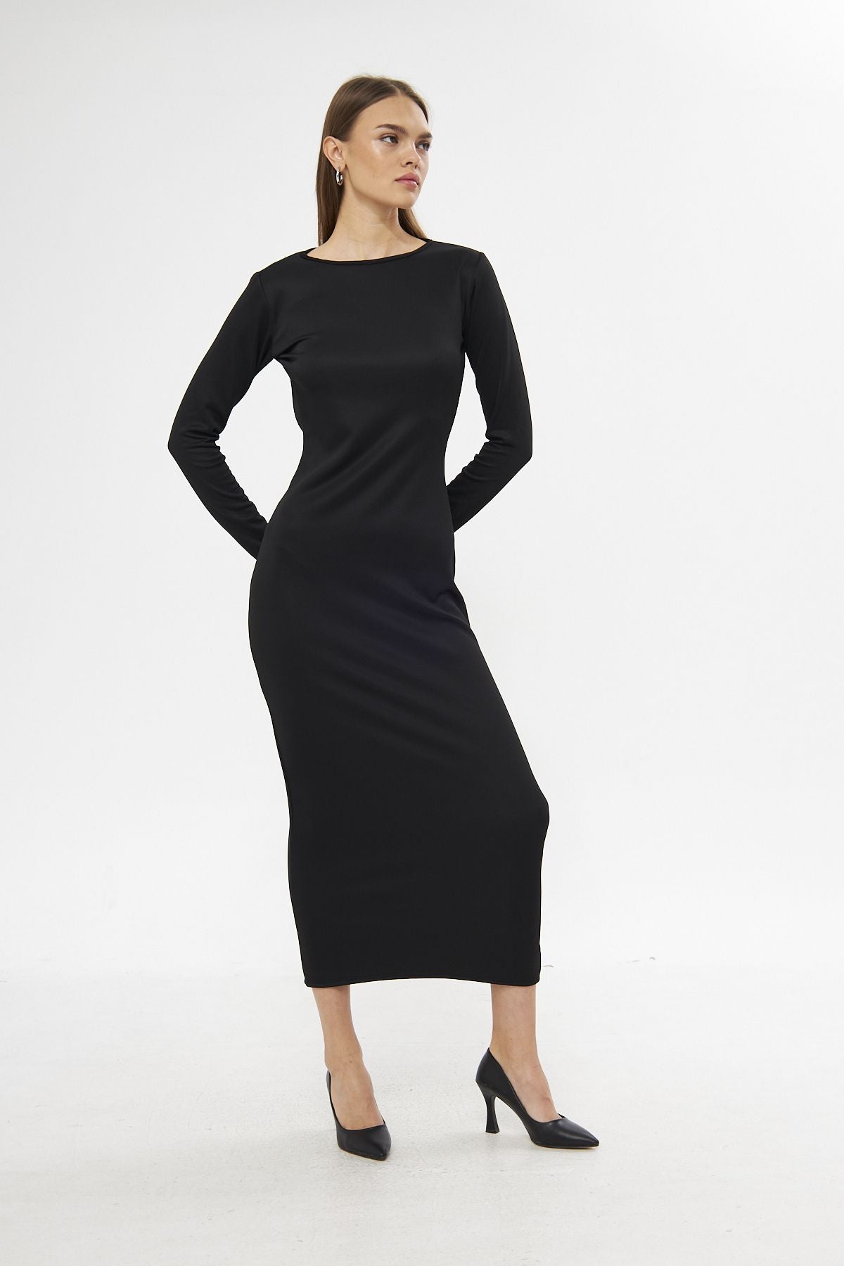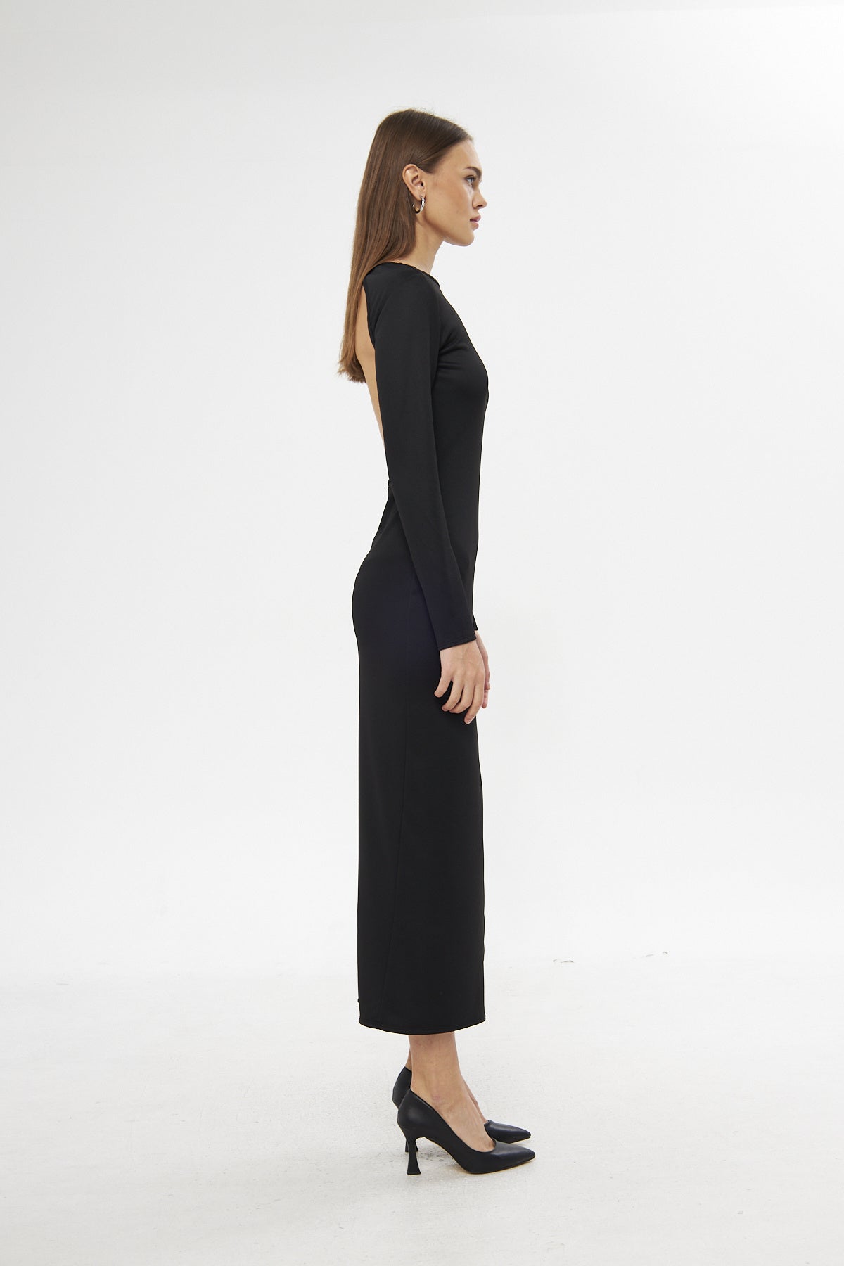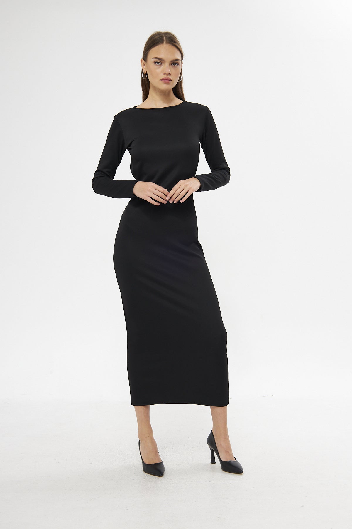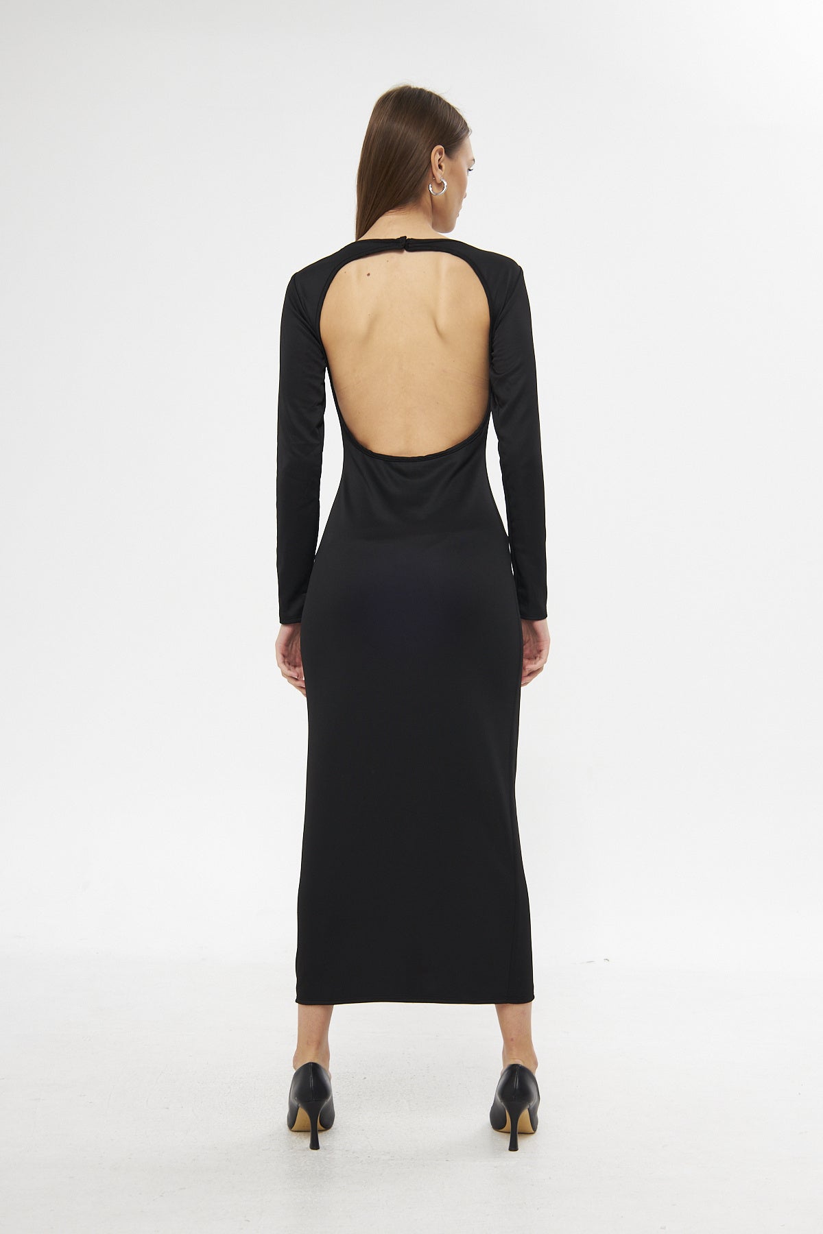 Lilibet Siyah Bisiklet Yaka Sırt Açık Uzun Kol Maxi Kadın Elbise