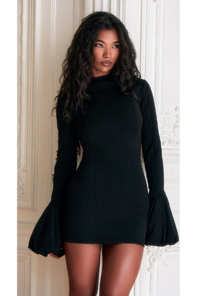 Madridnight Siyah Vücuda Oturan Balon Kol Kadın Elbise