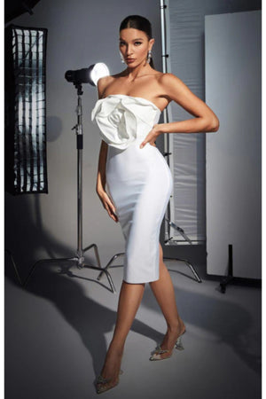 Fée İspanyol Tek Kol Beyaz Gümüş Simli Kadın Elbise