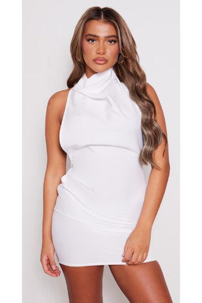 Barbur Beyaz Dik Yaka Sırt Açık Kadın Elbise