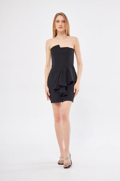 Lalila Fırfırlı Şort Etek - Askılı Katlı Rahat Form Crop Kadın Takım