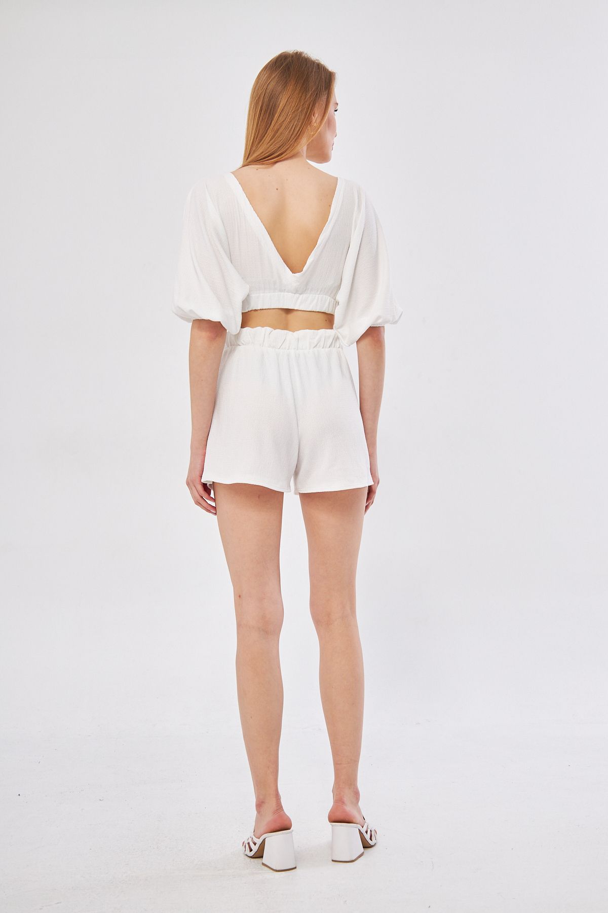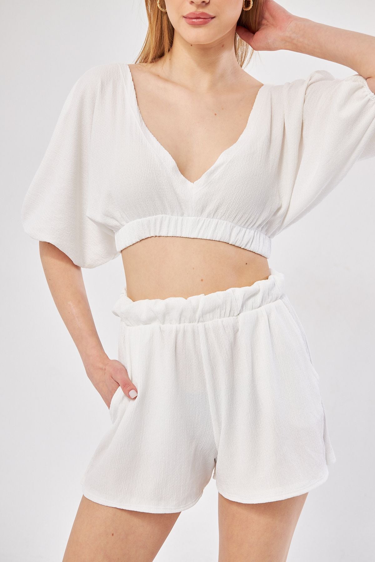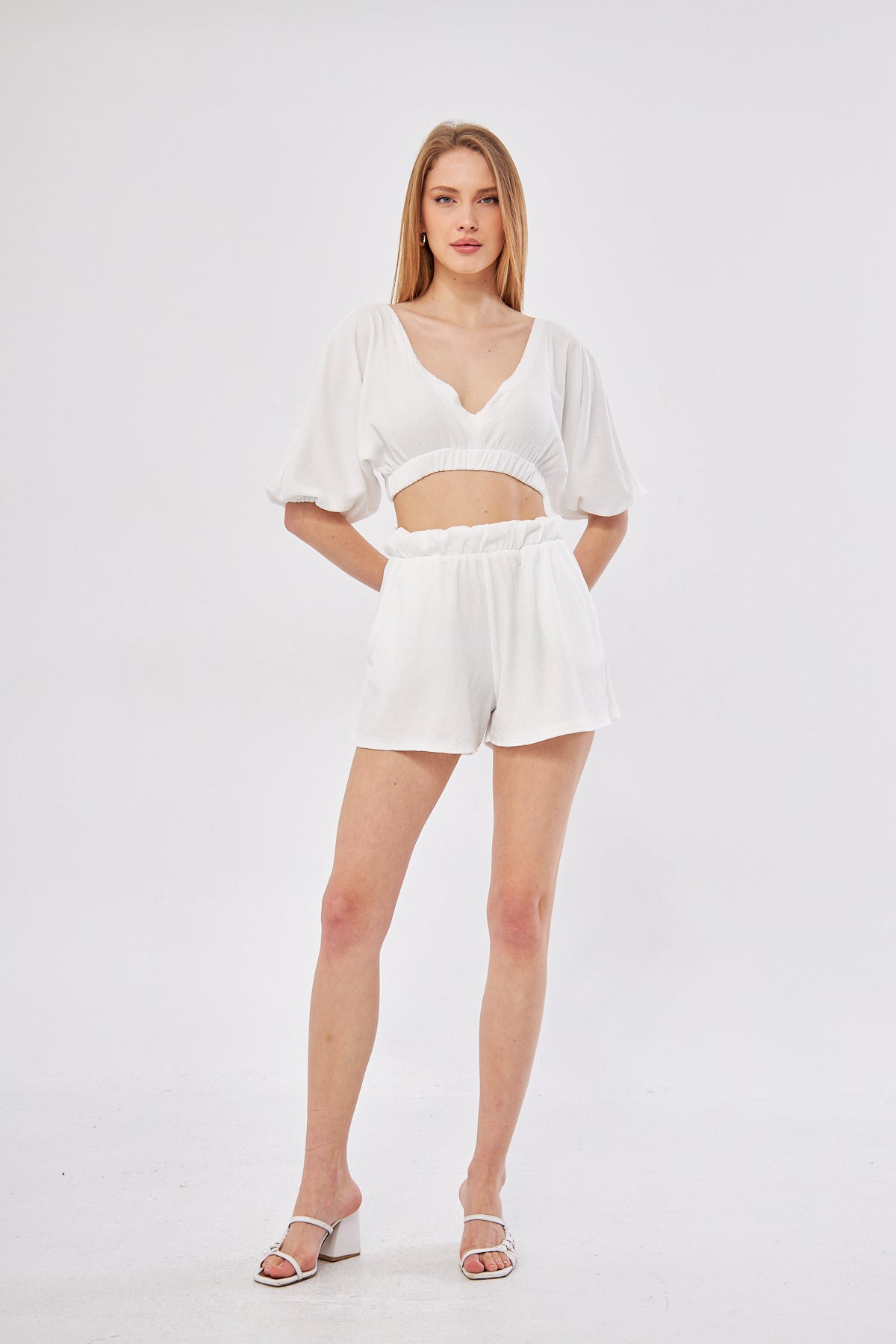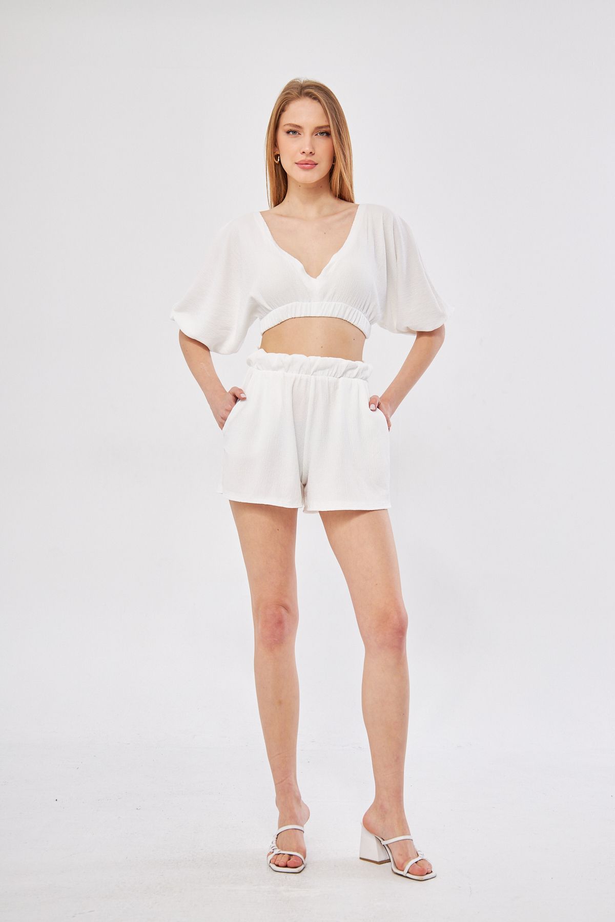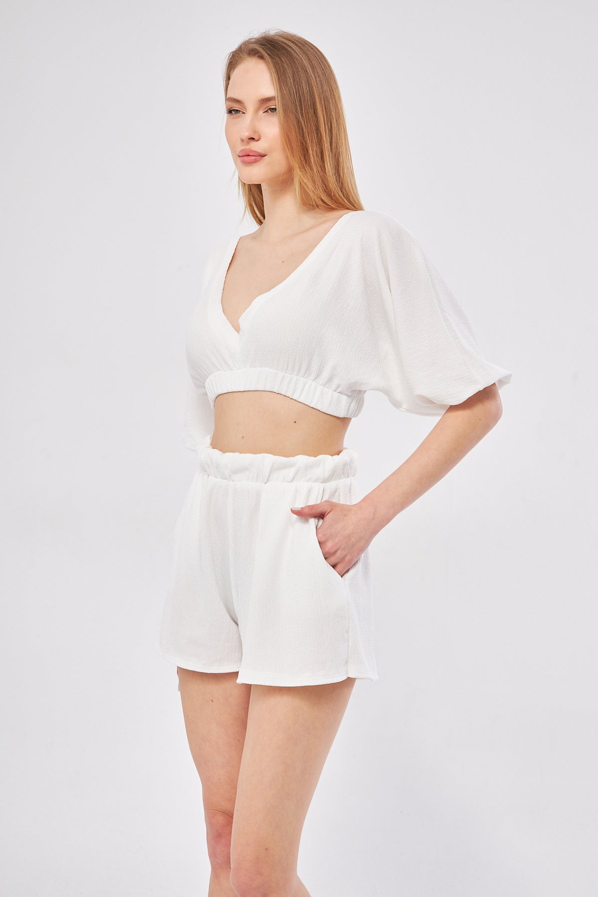 Liraz Siyah Balon Kol Alt Lastikli Crop- Lastikli Cepli Şort Kadın Takım