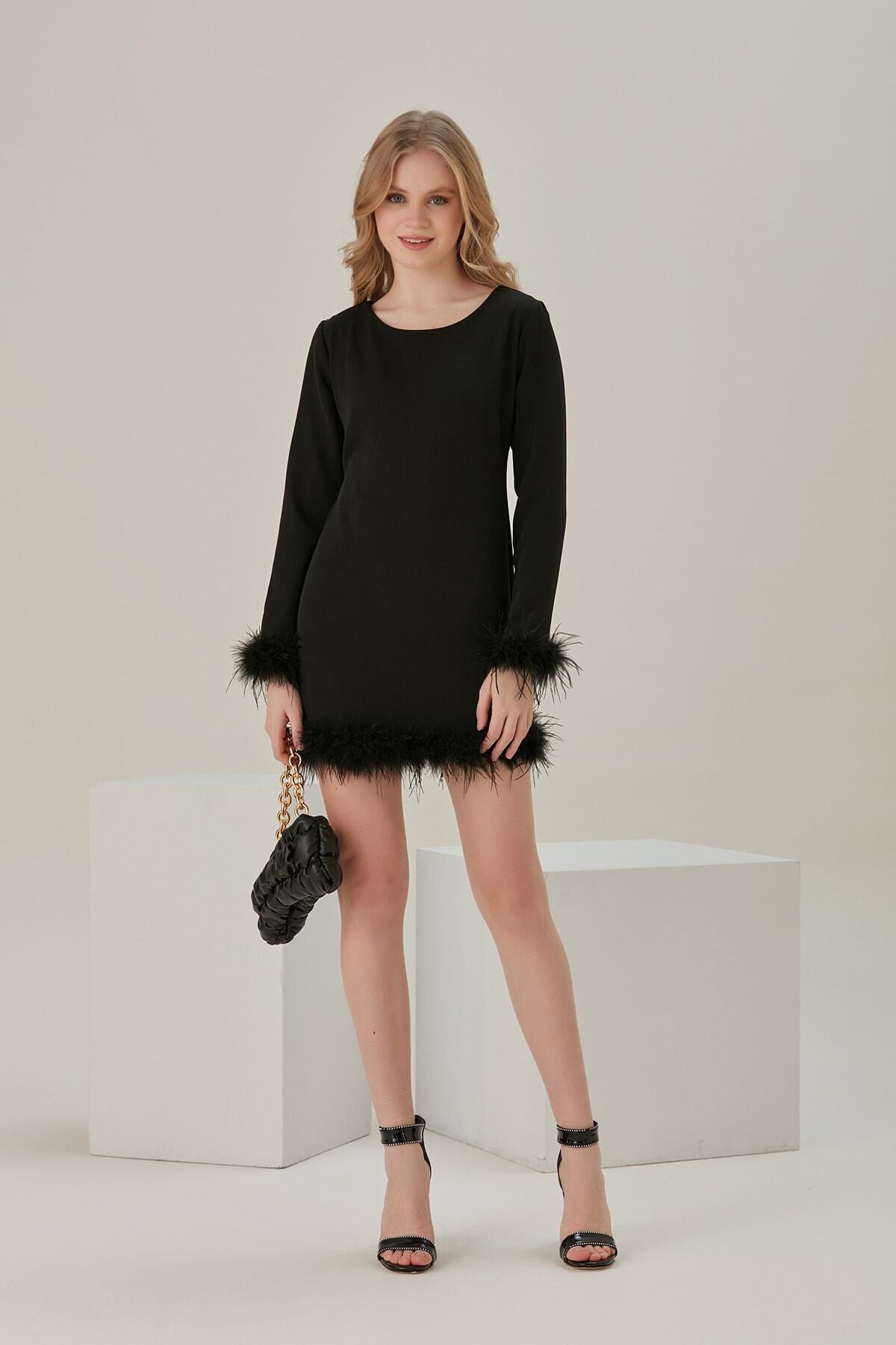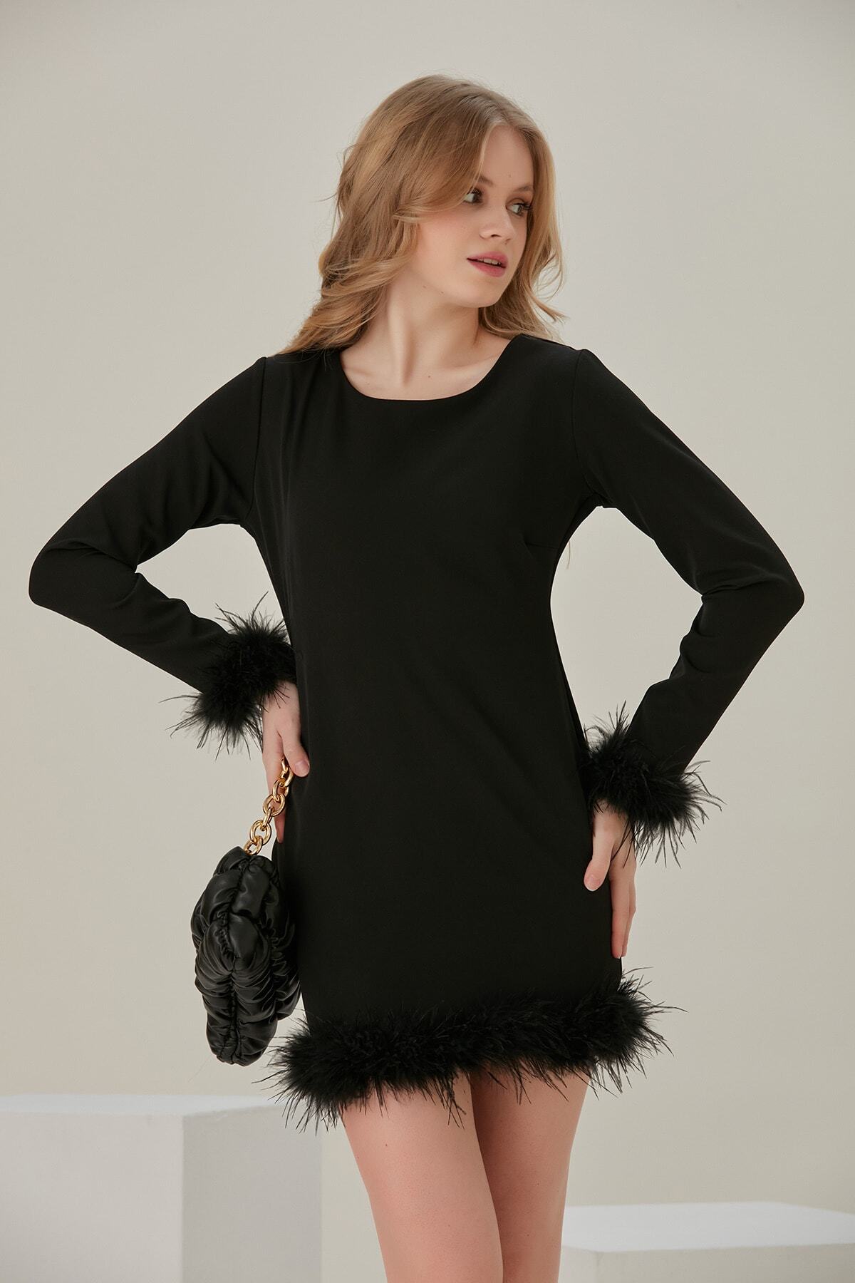 Noir Bleuet Siyah Kol Ve Etek Ucu Otriş Tüylü Kadın Elbise