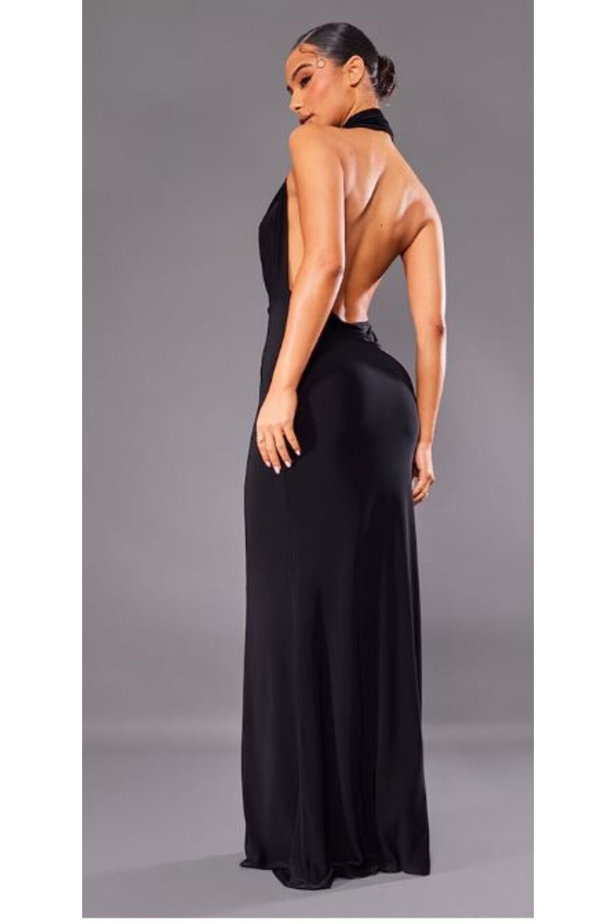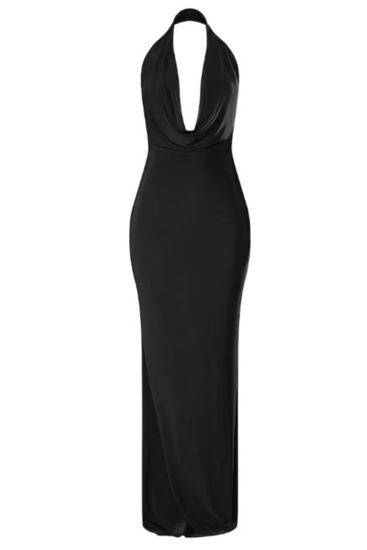 Smyra Siyah Degaje Yaka Kadın Maxi Elbise